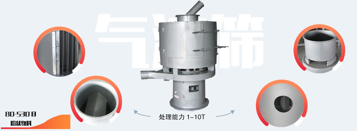 氣流篩可對細度范圍在80-500目內的粉狀物料很好的連續(xù)篩分,篩網可任意更換。它主要用來解決煤粉精篩、比重輕、大產量等篩分難題!氣流篩的篩分效率非常高,可達到95%以上。單臺每小時工作產量是普通振動篩的5-10倍。